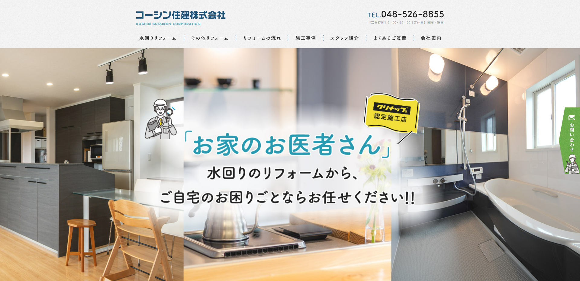 埼玉県熊谷市を中心に、バスルーム・キッチン・トイレなどのリフォームを手がけているコーシン住建。TOTO、サンウエーブ、INAXなどの有名メーカーの商品を取り扱っていますが、コーシン住建はクリナップの指定店であることが特徴。そのため、比較的リーズナブルな価格で商品を用意できるとのことです。