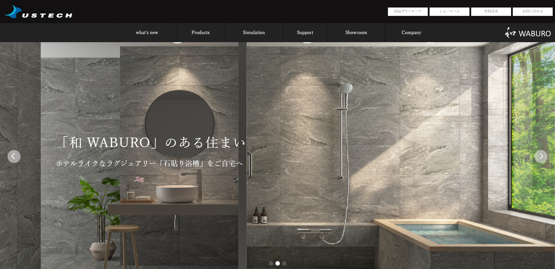 アステックが提供する「和 WABURO」は、和モダンを基調とした浴槽ブランド。和モダン石貼り浴槽シリーズと、それを標準搭載したユニットバスの総称です。この製品は「旅館にあるような浴槽を自宅に」という要望を具現化するもので、和デザインの浴槽とシンプルなパネルでコーディネートされているのが特徴。隅々に匠の技術が光ります。